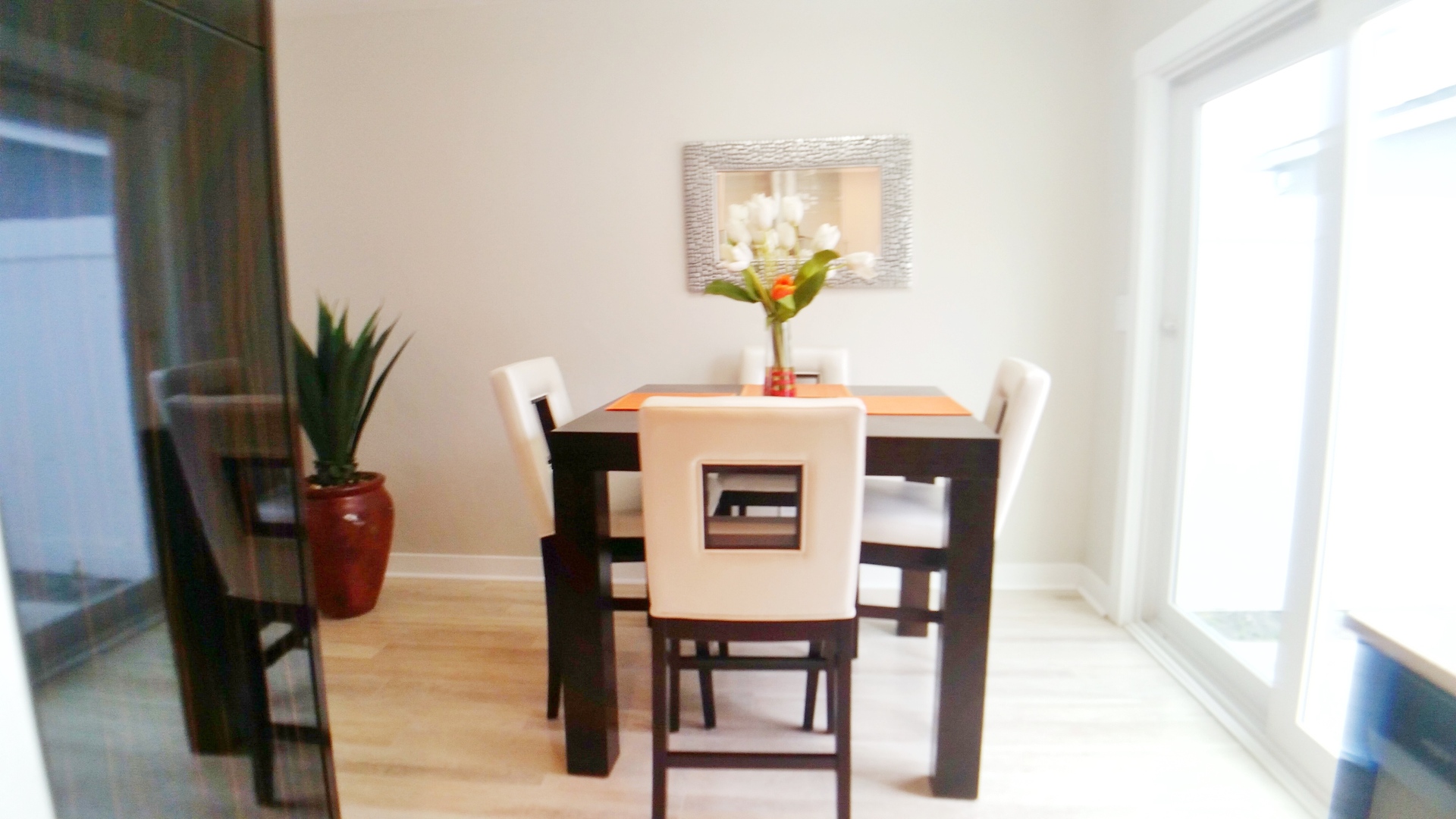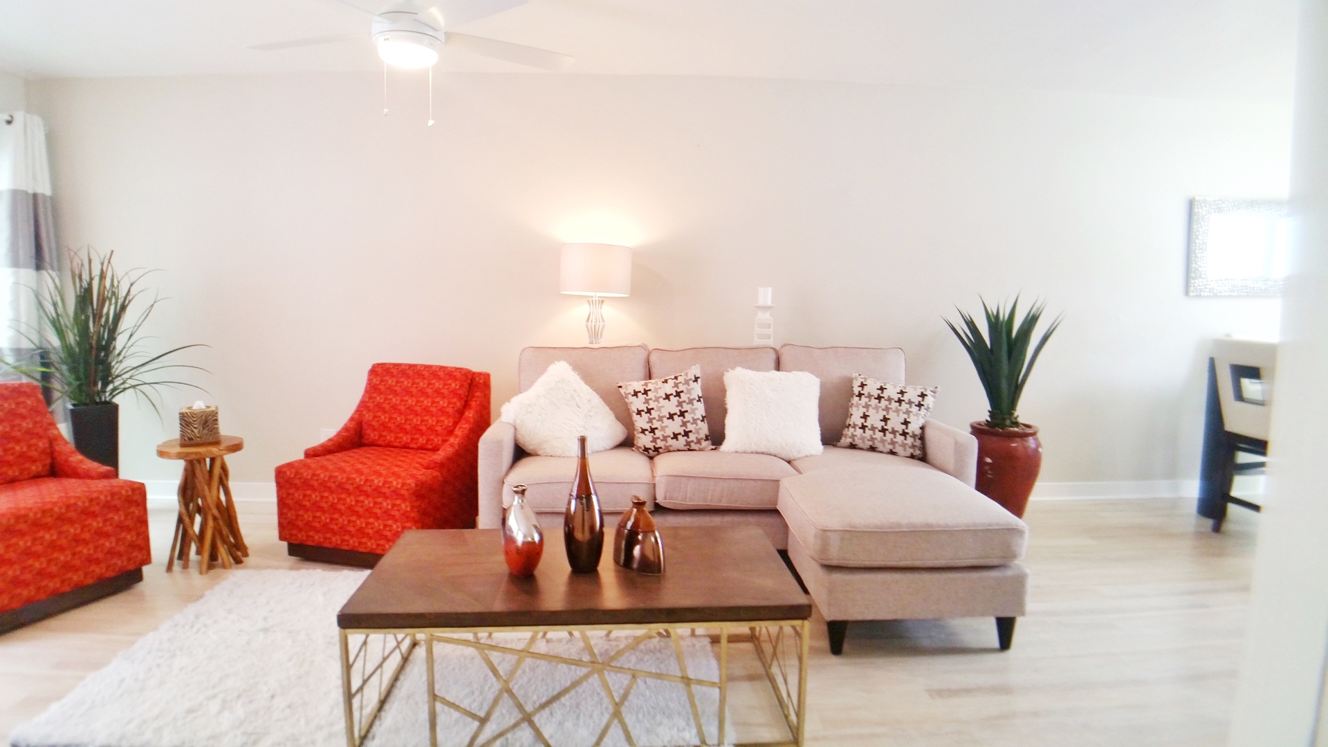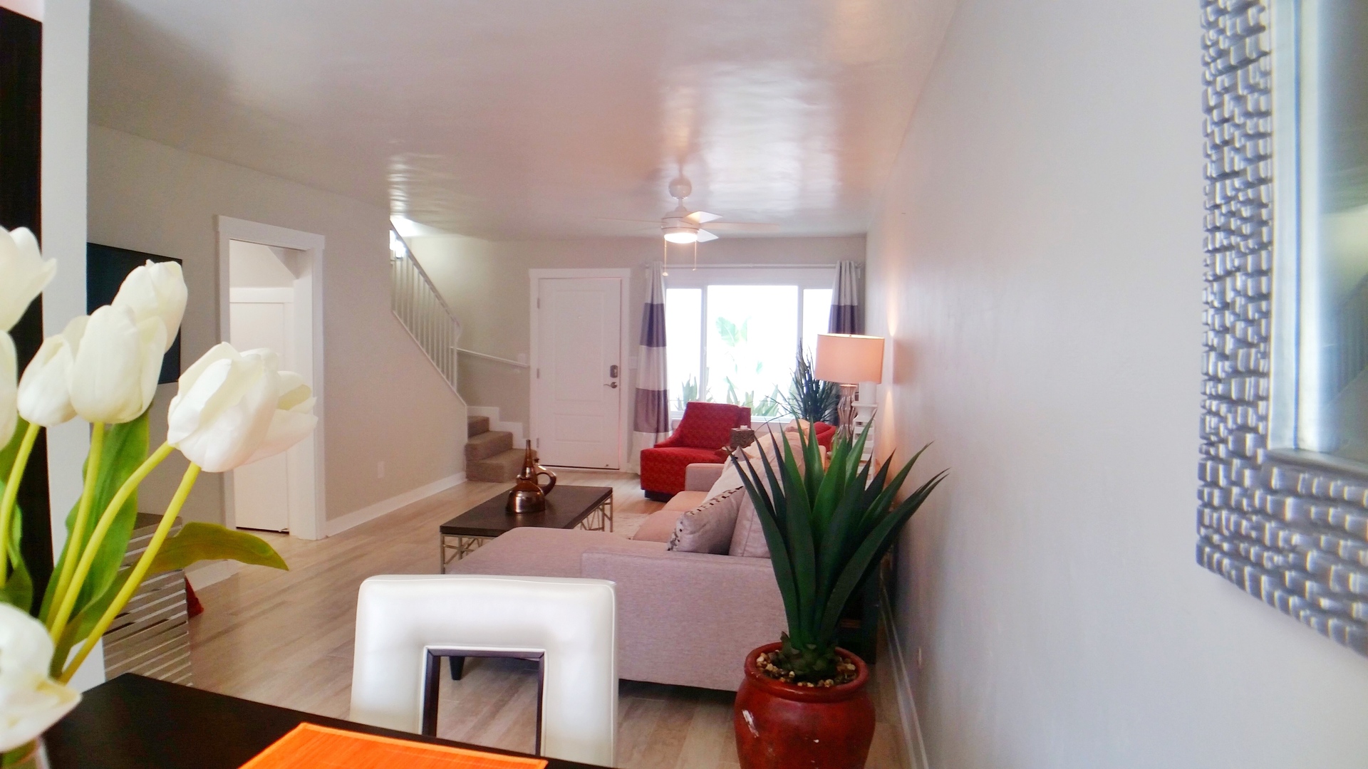 Townhome comes unfurnished. Furnished pictures are from the staging and will come with slightly diffrent color walls and/or wallpaper.