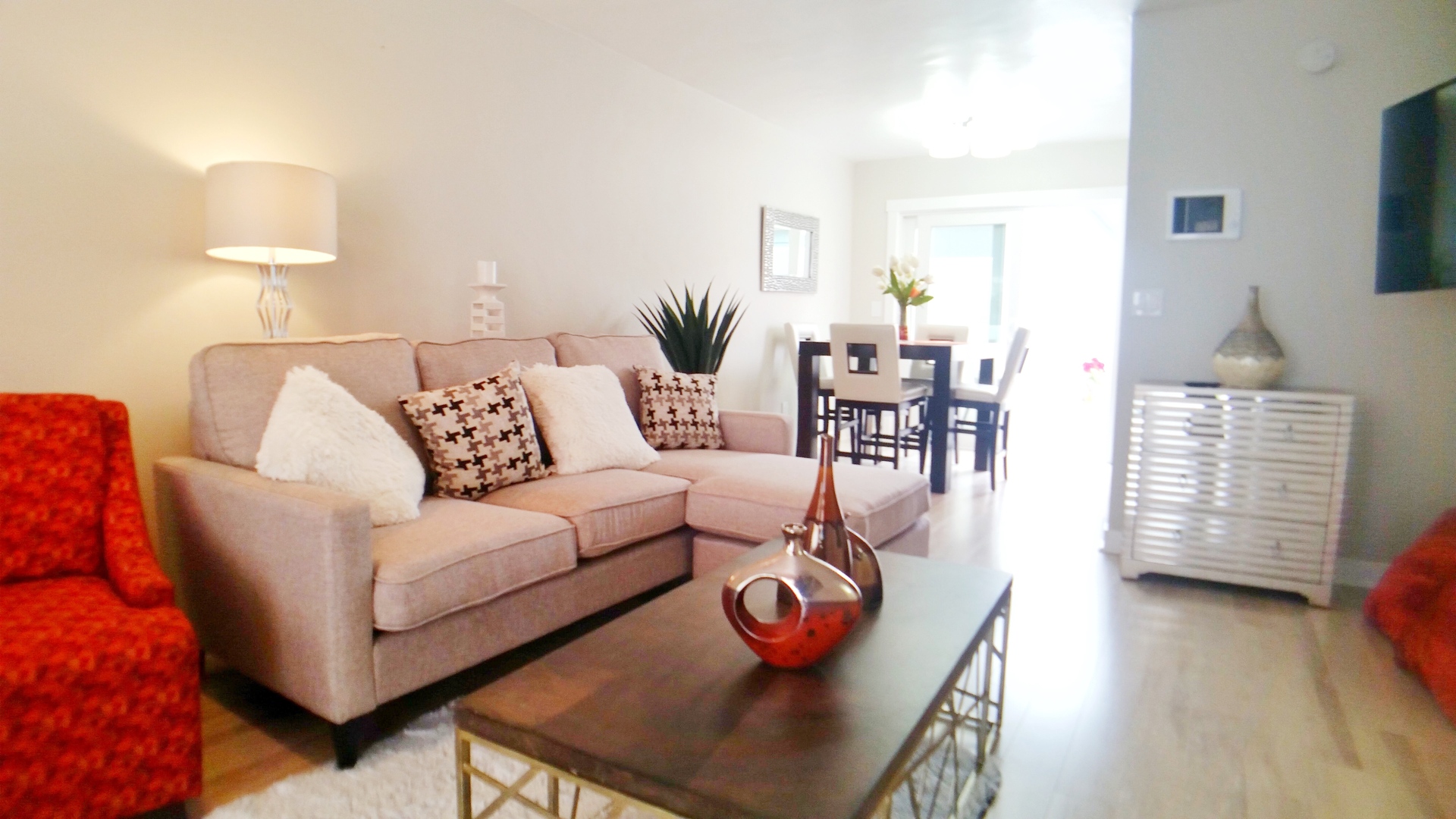 1) It's a very spacious townhome ~ 2 Bedroom 1 Master Bathroom and 1 half bath apartment. 2 dedicated off-street parking, Huge living room, lovely Patio, Custom Shower Tile, and luxury Flooring, Washer and dyer in unit. Recessed Lighting, Ceiling Fans.